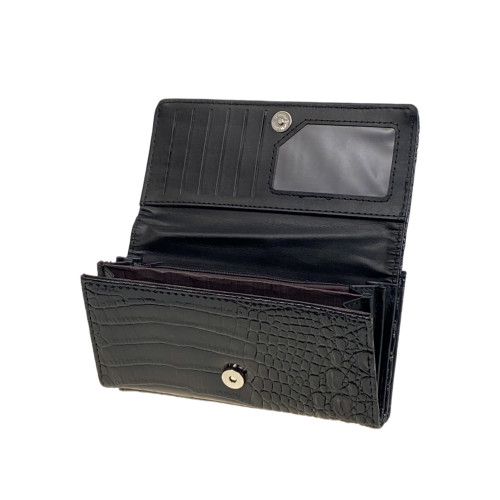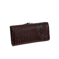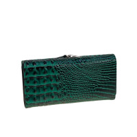 Полноразмерный женский кошелёк из искусственной кожи. Кошелёк закрывается на магнитную кнопку. Внутри три отделения под купюры, отделение на молнии, на верхнем развороте открsnjt отделение и 6 отсеков для карт. Снаружи отделение с фермуаром.