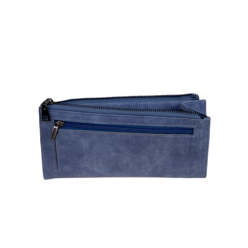 Женский кошелёк из искусственной кожи. Кошелёк закрывается на молнию. Внутри полноразмерное отделения под купюры, два отделения на молнии и 8 отсеков для пластиковых карт. Снаружи карман на молнии.