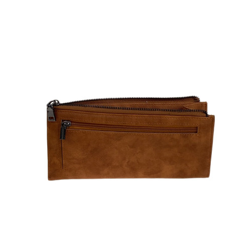 Женский кошелёк из искусственной кожи. Кошелёк закрывается на молнию. Внутри полноразмерное отделения под купюры, два отделения на молнии и 8 отсеков для пластиковых карт. Снаружи карман на молнии.