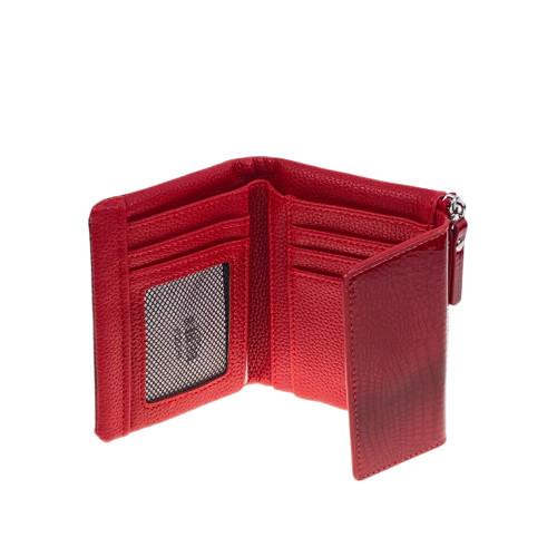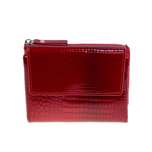 Компактный женский кошелёк из искусственной кожи. Кошелёк закрывается наскрытую магнитную кнопку. Внутри одно полноразмерное отделение под купюры, 6 отсеков для карт и три небольших открытых отделения. Снаружи отделение на молнии.