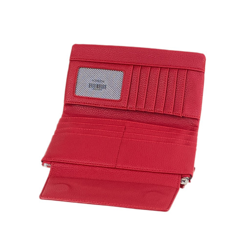 Полноразмерный женский кошелёк из искусственной кожи. Кошелёк закрывается на скрытые магнитные кнопки. Внутри два отделения под купюры и 13 отсеков для карт. Снаружи отделение на молнии.