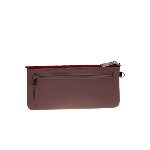 Полноразмерный женский кошелёк из натуральной кожи. Кошелёк закрывается на молнию. Внутри одно отделение под купюры, 10 отсеков для карт и по бокам два дополнительных открытх отделения. Снаружи отделение на молнии. В комплекте ремешок.