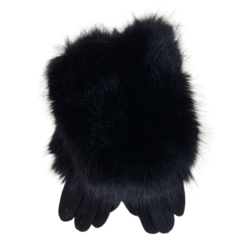 Утепленные женские перчатки с мехом , цвет черный