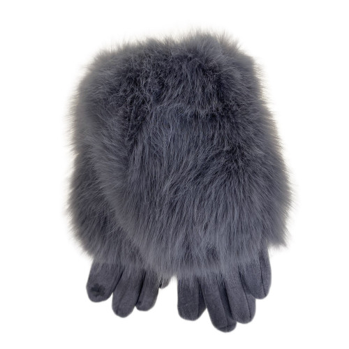 Утепленные женские перчатки с мехом , цвет серый