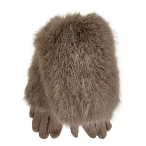 Зимние меховые женские варежки, цвет светло коричневый арт. 018NA1025/5