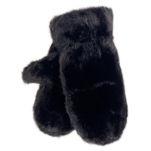 На фото 1 - Зимние меховые женские варежки,  цвет  черный