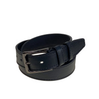 Мужской ремень из натуральной кожи, декорирован объёмным геометрическим узором. Пряжка металлическая, прямоугольной формы. Цвет фурнитуры чёрный никель. Ремень оснащён парой кожаных фиксаторов. Длина 130 см, цвет чёрный