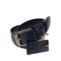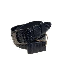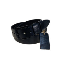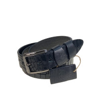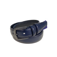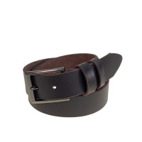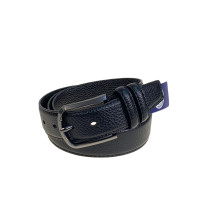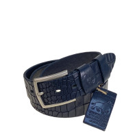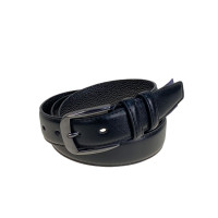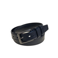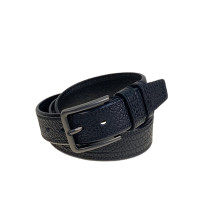 Мужской ремень из натуральной кожи. По всей длине декорирован узором-рельефом. Застёжка металлическая, прямоугольная, игольчатая. Цвет фурнитуры чёрный никель. Ремень оснащён парой кожаных фиксаторов. Цвет черный, длина 105 см.