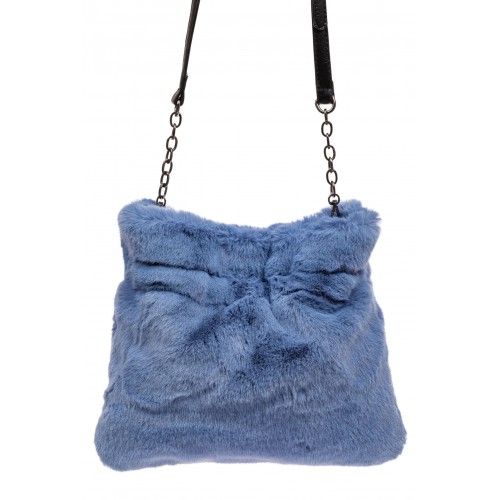 Женская сумка-кросс-боди из натурального меха. Стильная модель сезона 2019/2020. Фронтальная часть украшена длинными шнурками-утяжками, на концах металлические бусины, цвет фурнитуры черный никель. В комплекте длинный наплечный ремень из искусственной кожи.