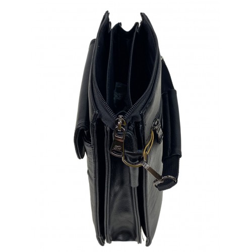 Cумка из фактурной натуральной кожи. Обеспечивает надёжное хранение гаджетов и важных документов. Имеет съёмный текстильный ремень. Сумка закрывается на молнию, внутри три отделения. На фронтальной стороне открытый карман под клапаном с магнитными кнопками и прорезной карман на молнии. Снаружи на задней стенке карман на молнии.